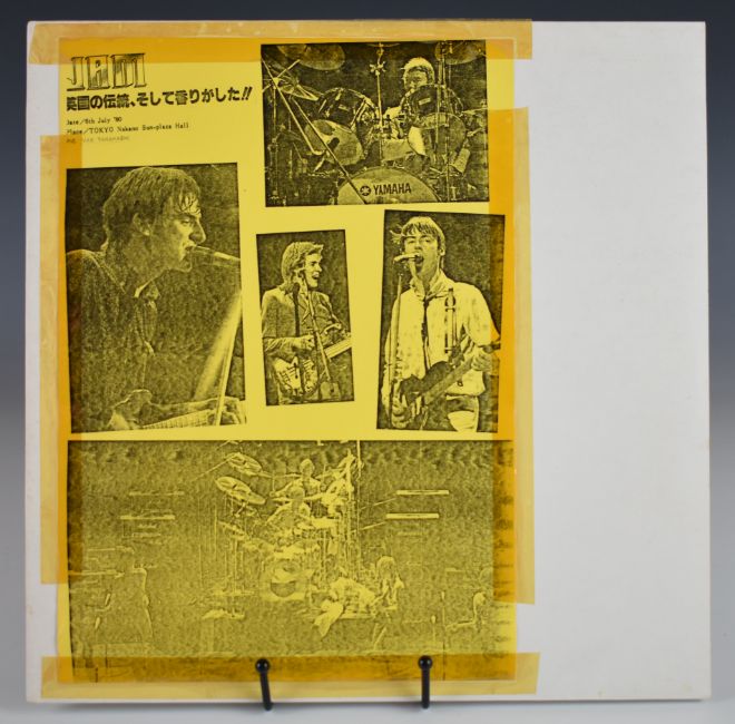 The Jam - Burning Sky Tokyo, Japanese live LP with handmade cover, white vinyl with blank labels and yellow hype sticker on label with track listings.