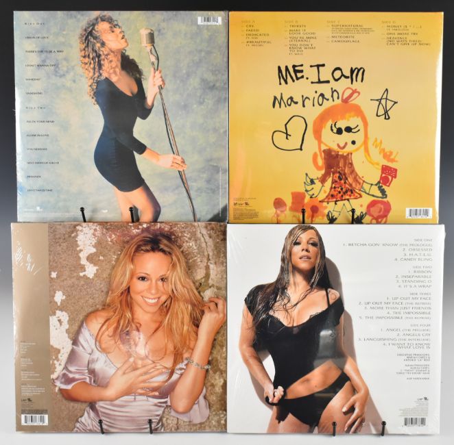 Four Mariah Carey LPs, all new / sealed in shrink wrap, including Charm Bracelet, Me I Am Mariah, Memories of an Imperfect Angel and self titled. Part of a collection of 300 new / sealed LPs in this auction.