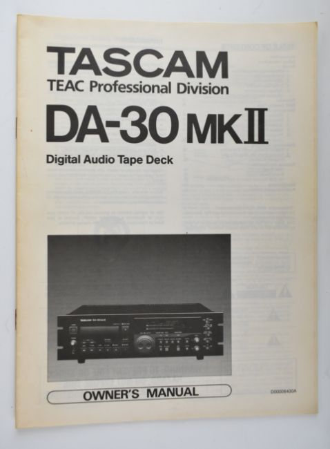 Tascam DA-30 MK II DAT Digital Audio Tape Deck, TEAC Professional Division, serial no. 250492, with original owner's manual.