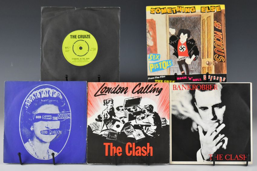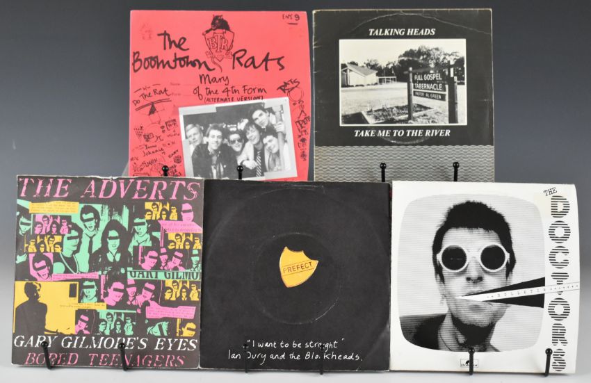 Over one hundred and thirty Punk Rock / New Wave / Post Punk / Indie Rock 7" singles. The Clash London Calling, Bankrobber, White Riot and Remote Control, three Sex Pistols including God Save The Queen, The Cruize, Bet Lynch's Legs, The Boys, X-Ray Spex, Devo, Vapours, Skids, Generation X, Ramones, Buzzcocks, The Lone Groover, Telex, The Pirates, Deaf School, Undertones, The Smiths, The Stranglers, Bauhaus, The Doctors of Madness, The Adverts, Rag and Bone Icky Thump, The Tubes, Squeeze, Talking Heads, The Damned, Lene Lovich, Squeeze, Eddie and the Hot Rods, Boomtown Rats, Tourists, Ian Dury, Elvis Costello, The Cure, Alarm, Bumble and the Beez, Europeans, Brandon Steep, Prince, Proclaimers, Flying Lizards, several Depeche Mode including a flexi disc (red), The Cars, Tubeway Army, Teardrop Explodes, The Police, Lotus Eaters, Jona Lewie, China Crisis, Japan, Blondie, Style Council, The Jam, The La's, Tears for Fears, Big Country, Simple Minds, etc. Vinyl appears to be VG+ or better in the main