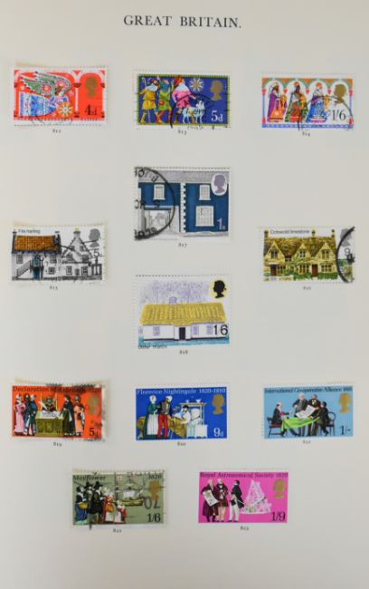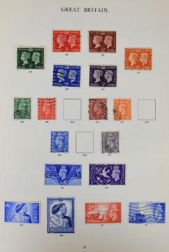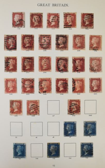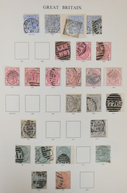 Windsor stamp album with stamps from 1840-1970 including 1840 1d black and 2d blue, six imperf 1d reds with black Maltese cross cancellations, three 1841 2d blues with black Maltese cross postmarks, range of line engraved stamps including 1d red plates to PL 224, good range of surface printed with values to 1/-, 1884 set of lilacs and greens with good colour on 4d, 1887 to 1/-, 1924 Wembleys MM, 1925 Wembleys used, King George VI definitives to £1 (1938 and 1951), 1948 £1 Royal Silver Wedding MM, extensive range of Queen Elizabeth II commemoratives to 1970