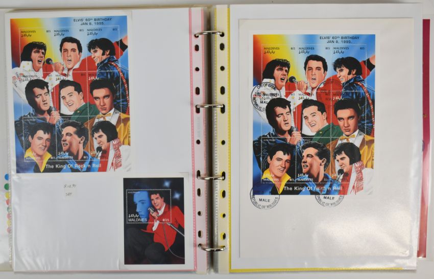 A large collection of Elvis Presley stamps in albums and album pages, includes worldwide sets and miniature sheets, mostly UM and first day commemorative covers, uncut sheet of St Vincent mini sheets, album of Stars & Screen Collezion and album of 'Elvis the Collection' first day covers