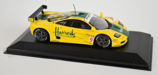 Three McLaren Collection 1:18 and 1:43 scale diecast model F1 GTR cars by UT models and Pauls Model Art Minichamps, all in original display boxes.