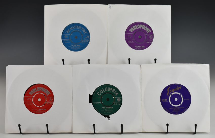 Approximately two hundred and seventy five Jazz / Dixieland / Ragtime / Swing / Dance etc UK released 7" singles, some UK tri-star centre releases, includes The Zaines, The Mad Scientist (USA DORE), Benny Goodman, Chic Hamilton (on Vogue), Rex Stewart, Sharkey's Kings of Dixieland, Elias and his Zig-Zag Jive Flutes, Eddie 'Lockjaw' Davis, The Red Price Combo, Earl Bostic, Al Hirst, Clyde Valley Stompers, Arnold Stang, All Star Alumni Orchestra, Woody Herman, Vic Damone, Kathy Linden, Stan Kenton, Sydney Bechet, Milt Jackson, Nelson Riddle, etc. From a very large single owner collection of 1950s and 60s vinyl in the auction, which includes rarities and collectibles. Vinyl appears to be VG+ in the main.