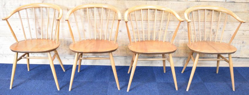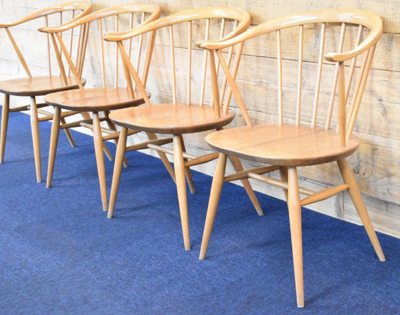 Set of four Ercol cowhorn armchairs or retro mid century dining chairs