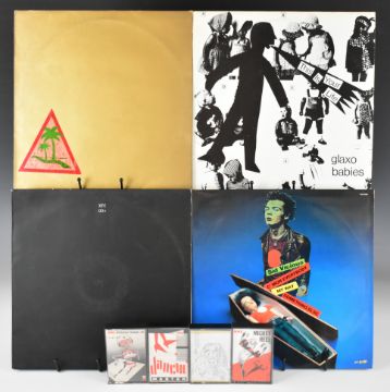 Seven Punk Rock / Post Punk / New Wave / Indie Rock 12" singles and four cassette tapes. 12" singles are Sid Vicious' Heritage (French Pressing), XTC,  The Members, Glaxo Babies, Random Hold, The Only Ones and Devo. Three cassettes are NME / Rough Trade and fourth appears to be homemade by The Bereaved.
