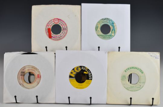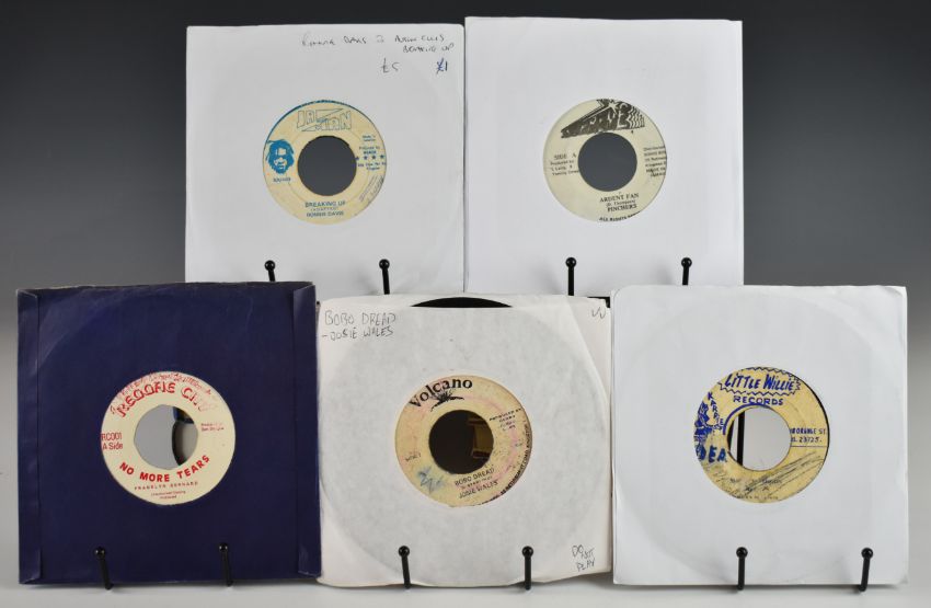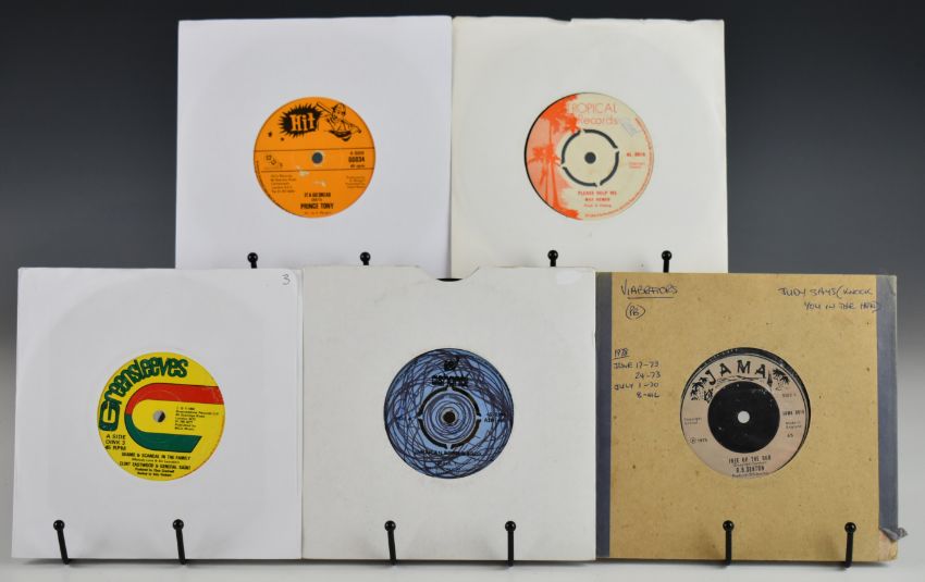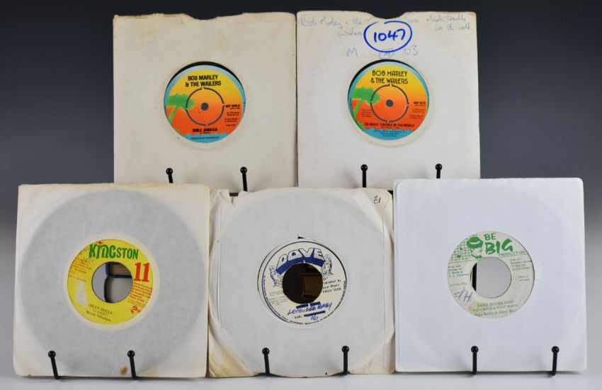 Approximately one hundred and ten Reggae / Dub / Ska / Lover's Rock / Dancehall 7" singles. Mix of UK and Jamaica releases. Bob Marley Wailers & I Three Knotty Dread, Rico's Combo You Win, Crystalites Singer Man, Mahalia Saunders Down the Aisle, Big Joe and Jah Pops, Little Roy, Elpedo Burke, Horseman (Giddi-Up), Roy Shirley,  J Stratdan, Errol T, BB Seaton, Clint Eastwood, Jimmy Wonder, Prince Tony, Barbara Jones, Johnny Clark, Matabaruka & Luciano, Duke Reid, Chariot Riders, Derrick and Patsy, John Holt, Cynthia Richards, Judy Mowatt, Winner All Stars, Keith Poppin, Josie Wales, Willie All Stars, Franklyn Bernard, approximately twenty five Bob Marley on UK Island etc.