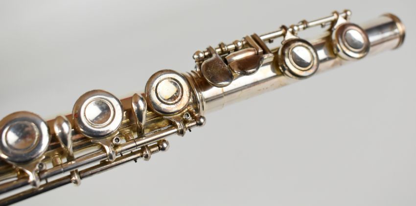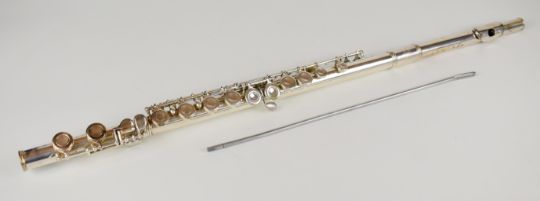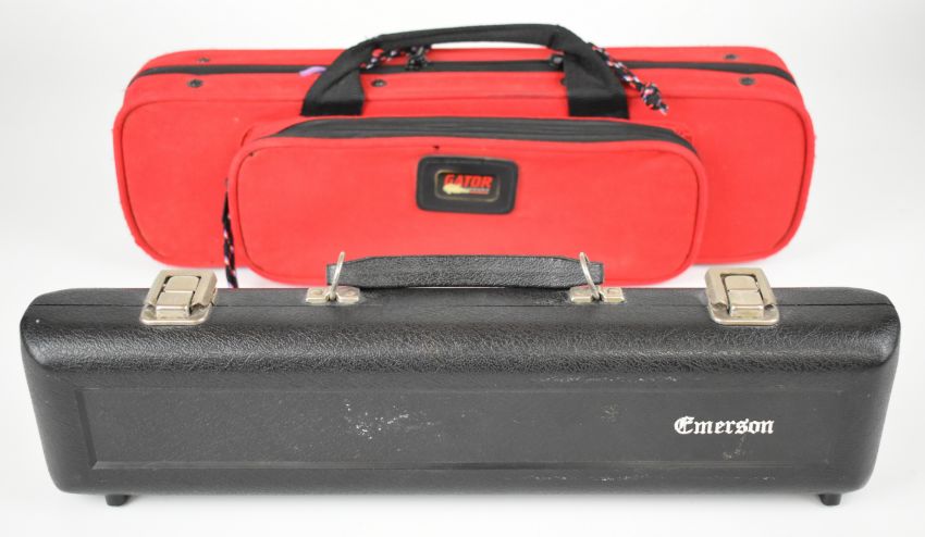 Emerson silver plated flute, Elkhart, Indiana, USA, serial No. D06368-1, in fitted case with additional soft bag.