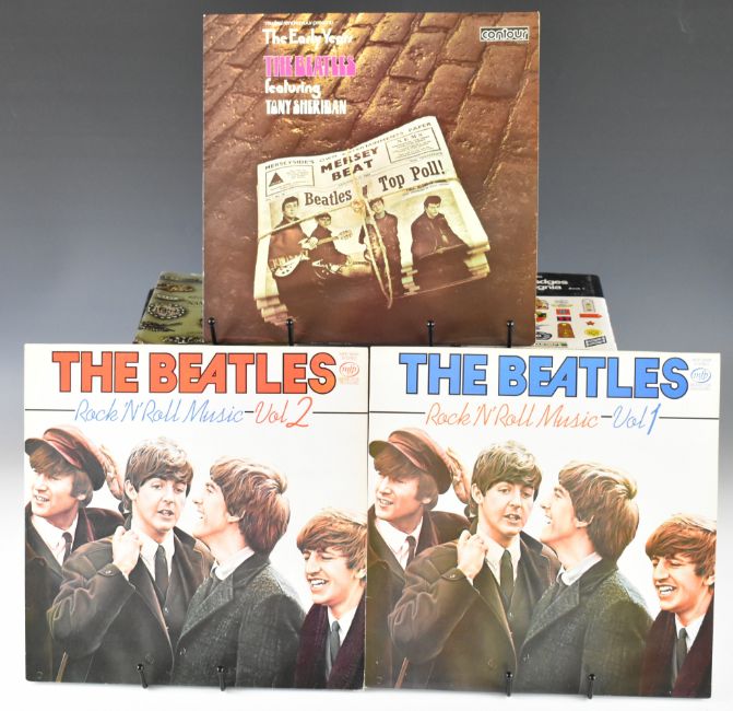 Fifteen Beatles LPs and one triple LP box set The Silver Beatles Live In Hamburg. LPs include The Beatles Love double LP (Apple Records 0602547048509) sealed in shrink wrap, The Beatles 1 double LP (Apple Records 0602537600793), Rare Beatles, The Beatles Rarities, Live at the Star Club Hamburg 1962, Live at the Star Club Hamburg 1962 Vol 1, Love Songs, 20 Greatest Hits, Ballads (two copies), Oldies Collection, Rock 'n' Roll Music Vols 1 and 2 and The Early Years. Vinyl appears VG+ to Ex in the main