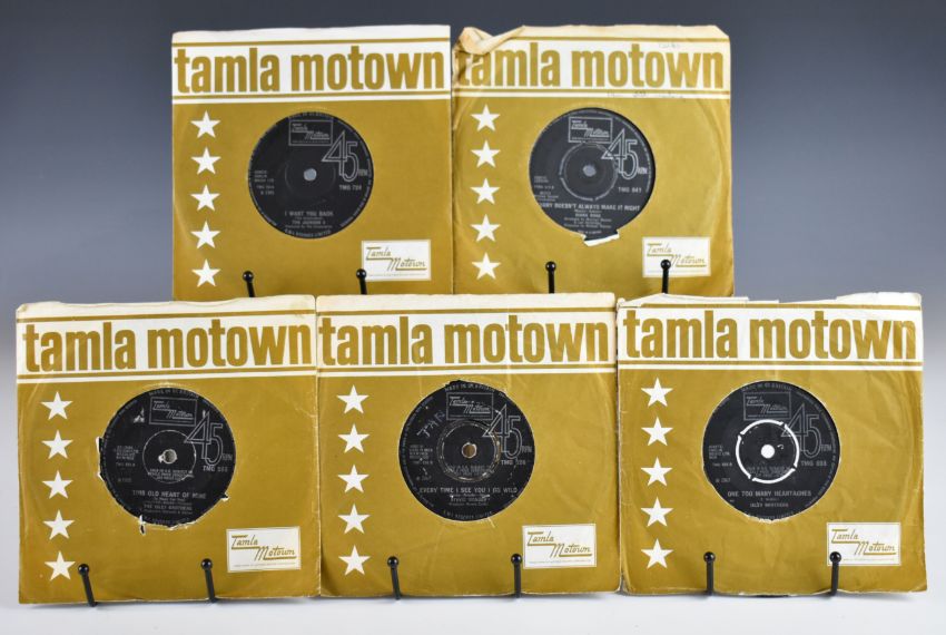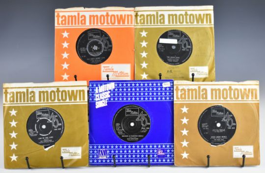 Approximately forty five Soul / R&B / Tamla Motown 7" singles including two UK Oriole The Contours and Little Stevie Wonder, seven UK red label Atlantic Otis Redding Mr Pitiful, Sam and Dave, Booker T etc, two UK Stax and thirty two UK Tamla Motown, Supremes, Temptations, Stevie Wonder, Isley Brothers, Four Tops etc.