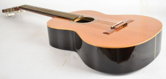 Cuenca Model 10 classical guitar in natural finish with spruce top, mahogany sides and rosewood fingerboard, 18 frets, made in Spain, No. 004209, in fitted hard case with accessories.