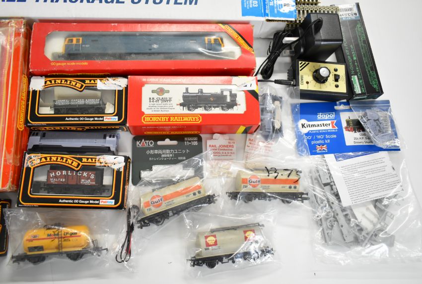 00 and 009 gauge model railway items to include Hornby Inter-City 125 High Speed Train Pack R332, LNER Class J83 R3668, Class 3F Jinty R058, Bachmann Gresley V2 Class 2-6-2, rolling stock, Gaugemaster controller and Peco Streamline track and points, mostly in original packaging.